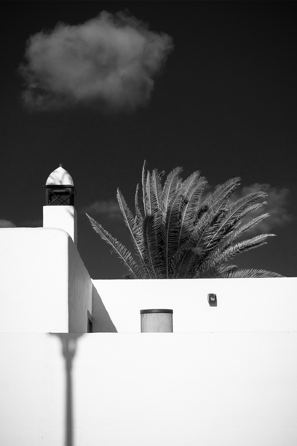 I am a photographer and artist based on Lanzarote. My work sits between observation and reduction: I start with the island’s ordinary materials—white stucco, lava stone, palms, salt air—and strip a scene to line, light, and texture. The trade winds clean the horizon; the Atlantic deepens the sky; architecture becomes a set of planes. I compose with negative space and rhythm rather than spectacle, trying to keep an image as calm as the moment that made it. The island’s vernacular shapes and modernist echoes are constant references: tight corners of facades, seams in plaster, a palm leaning into the wind. I prefer daylight, hard shadows, and a clear graphic language. Beyond photography, I also build site-specific objects under Fusionarte Lanzarote, but the photographs here remain the quiet core—studies of place that invite slow looking.
